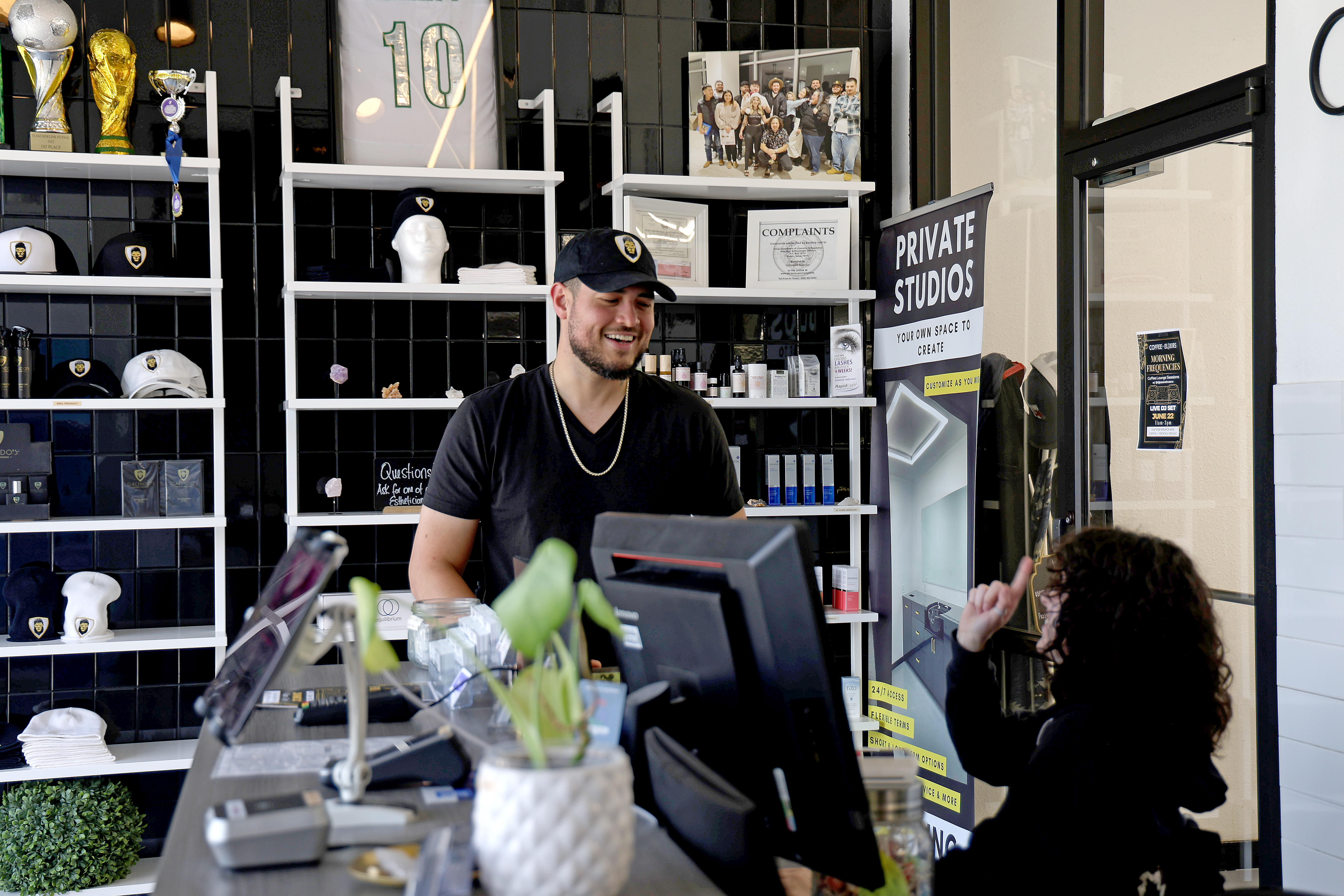 The 38-year-old owns two barbershops, a coffee shop, and a bakery and deli. Across the four businesses, he employs 70 people with help from his wife, Sophie, who moved to the U.S. from England as a girl.