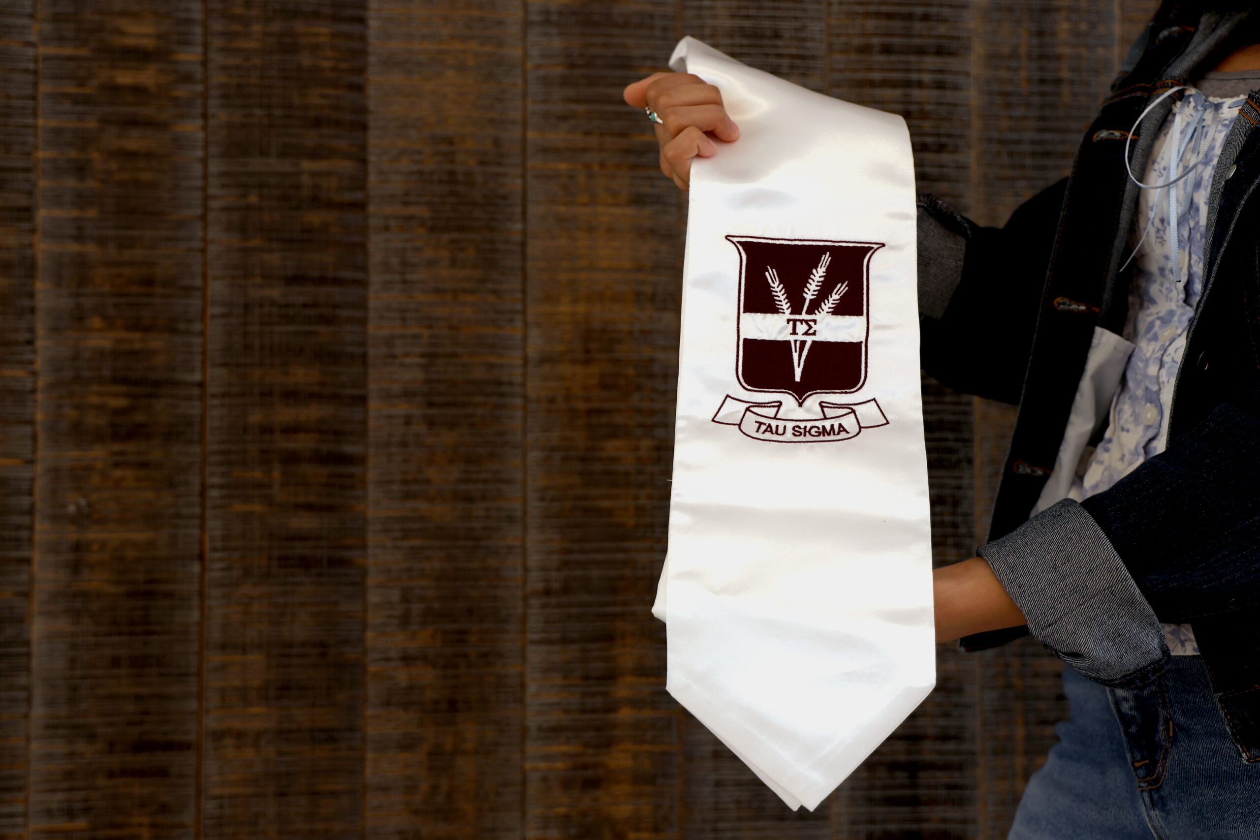 A.L. holds her Tau Sigma National Honor Society stole on Monday, June 16, 2025, in San Antonio. (Photo by Tristan E. M. Leach/News21)