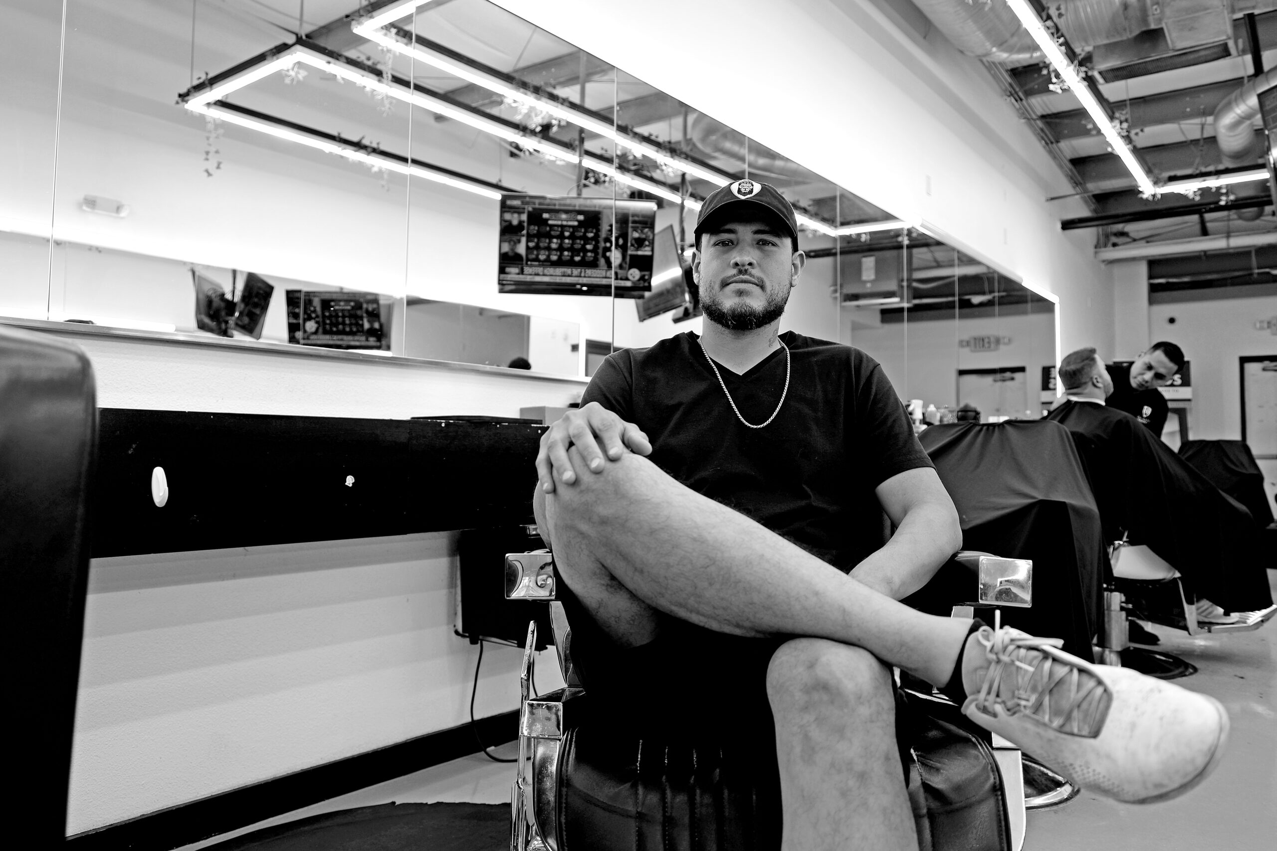 Zak Galindo poses for a portrait at his barbershop in Conroe, Texas. The 38-year-old credits his ability to obtain DACA with setting him on the path to becoming a successful business owner. (Photo by Tristan E. M. Leach/News21)