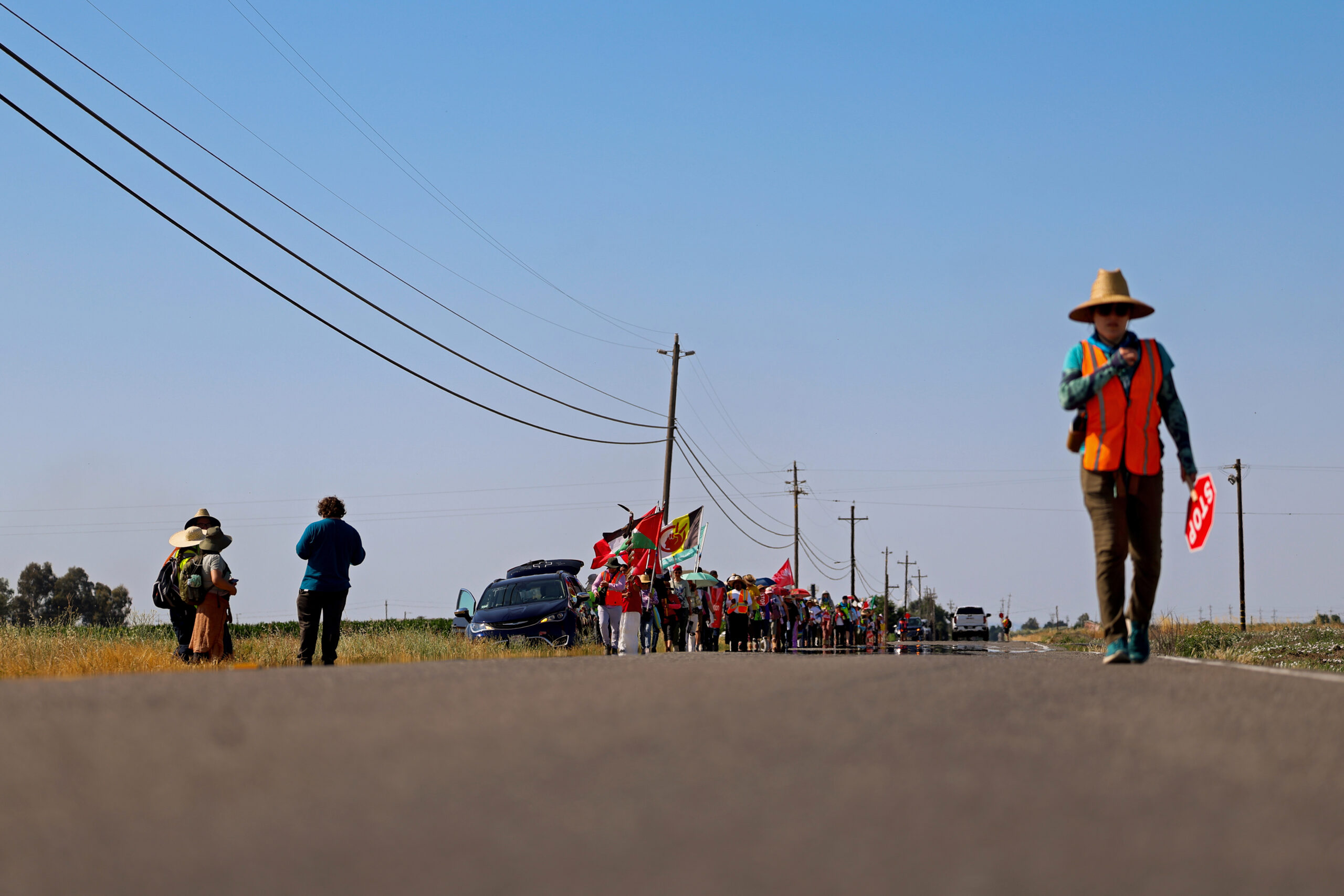 Trekking through rural farmland, marchers played music from portable speakers, danced on the side of the road and sang in Spanish – treating every step as a celebration of community, culture and resistance.