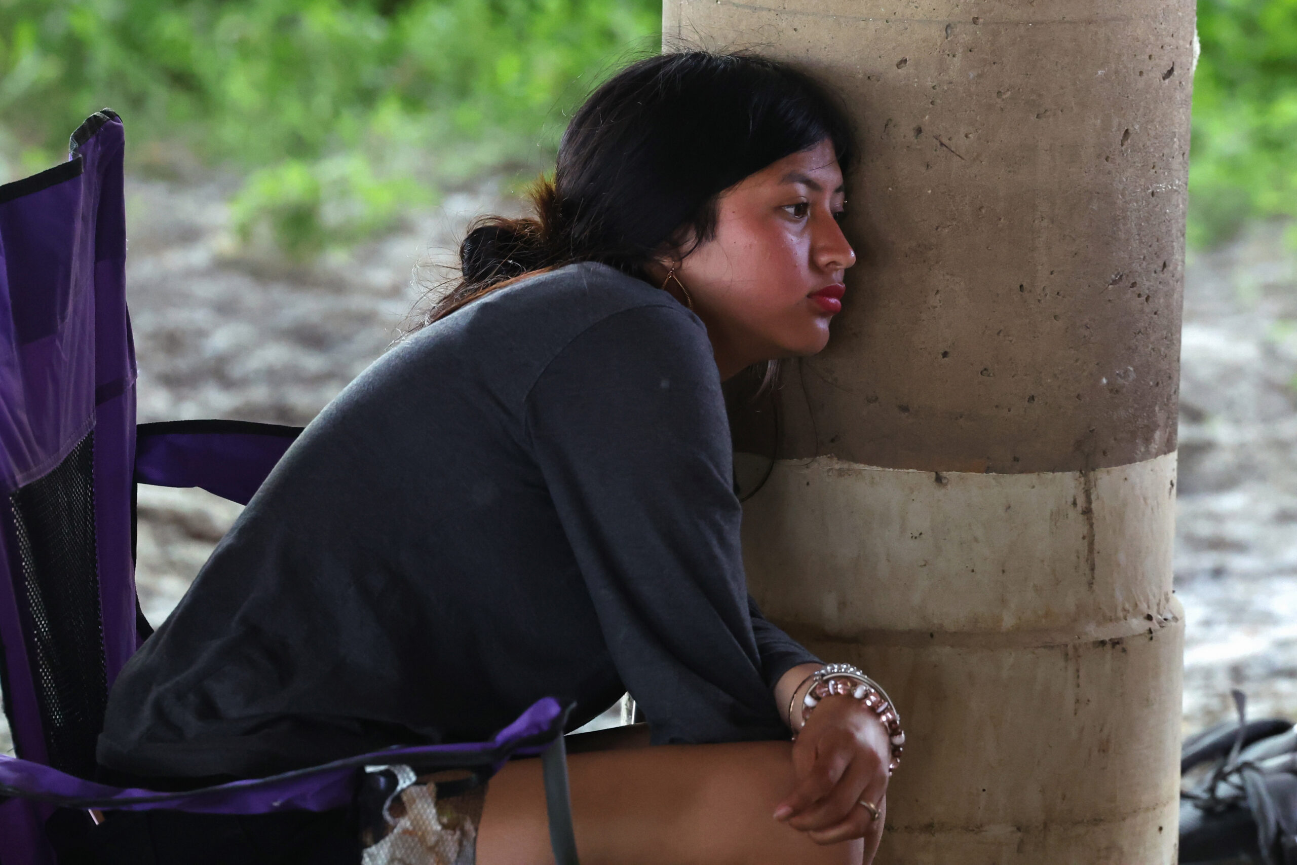 A protester rests under a freeway overpass on the last day of the walk. The group took frequent breaks throughout the march to ensure everyone remained safe and healthy. (Photo by Sydney Lovan/News21)