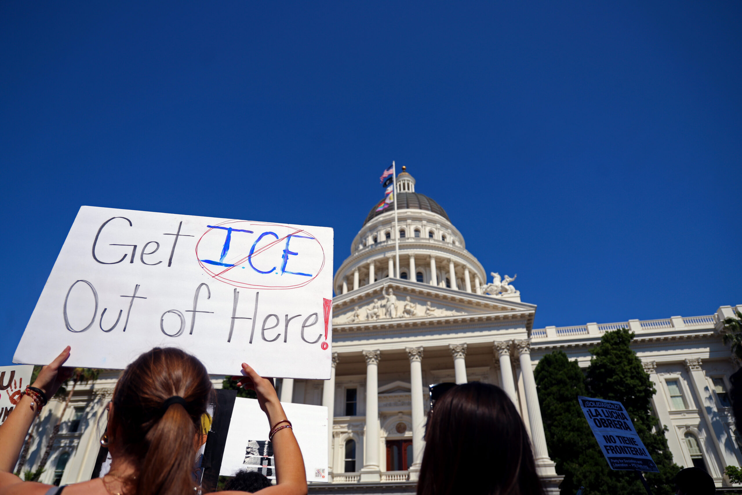 Members of the California Assembly and hundreds of protesters greeted marchers as they arrived at the Capitol in Sacramento. (Photo by Sydney Lovan/News21)