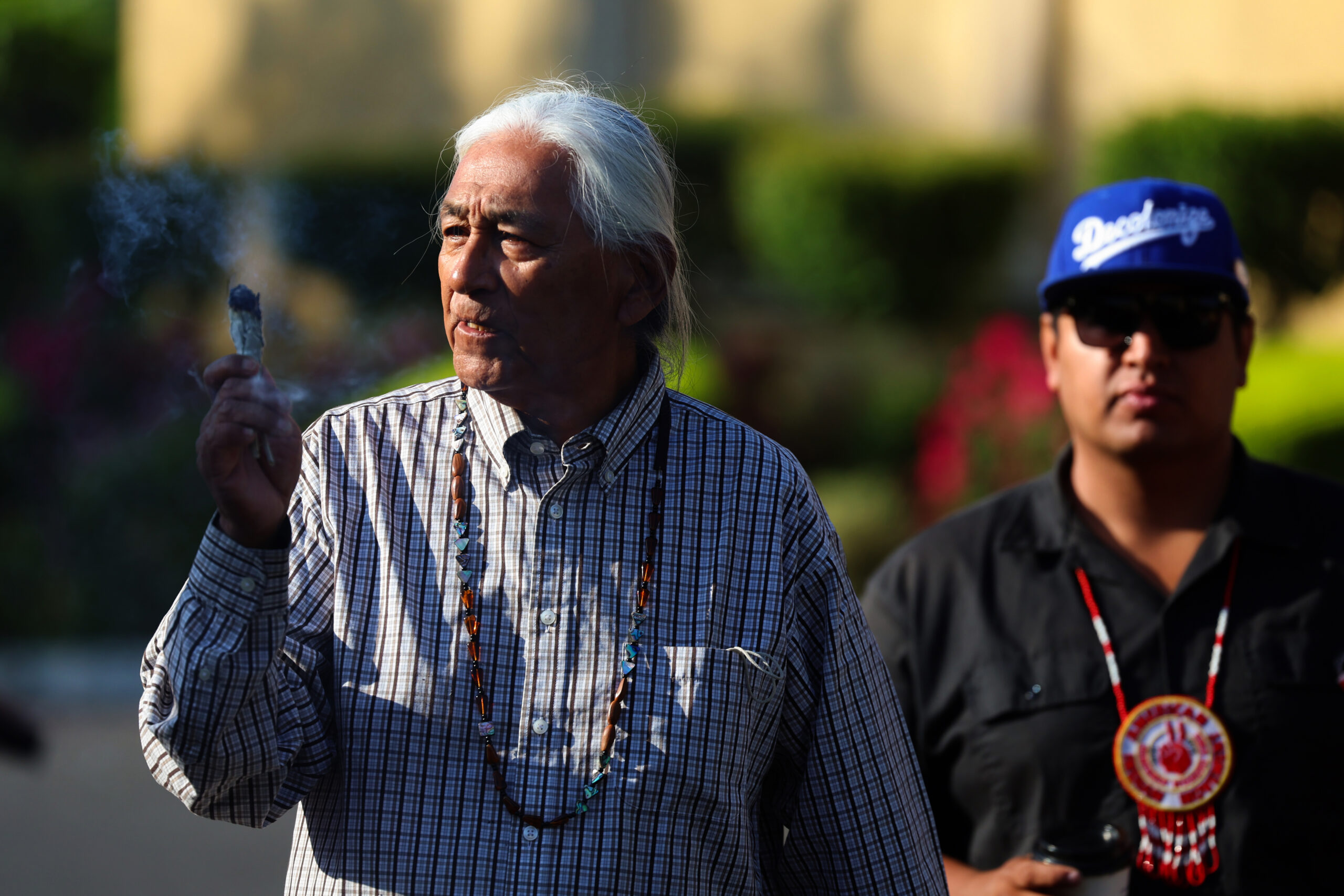 Bruce Gali, an elder of the Ajumawi band of the Pit River Indian Nation, offered a blessing each morning of the walk. (Photo by Sydney Lovan/News21)